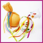 Put the rattle inside another sock and securely tie the end with a short, double-knotted ribbon.
